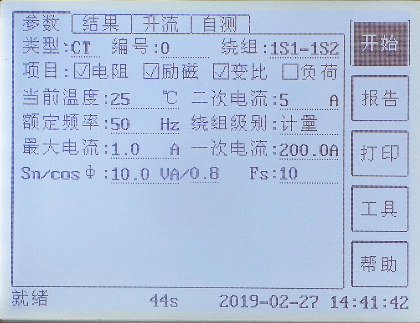 設(shè)置完成后,在確認(rèn)接線正確的情況下,點(diǎn)擊開始。(此處以1S1 1S2計(jì)量繞組為例)