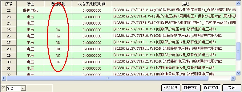 5)手動配置通道映射UA、UB、UC對應(yīng)描述為所加母線電壓,通過此時刀閘位置確定具體母線,也可以選擇自動配置通道映射,但需手動修改不需要的通道映射,相對比較麻煩。