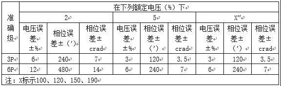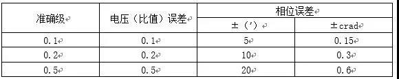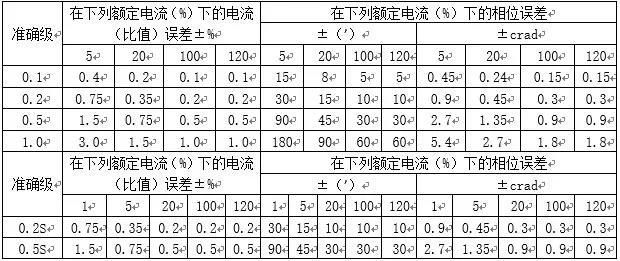 根據(jù)GB/T20840.7-2007、GB/T 20840.8-2007相關(guān)規(guī)范,電流、電壓互感器的誤差范圍見下表: