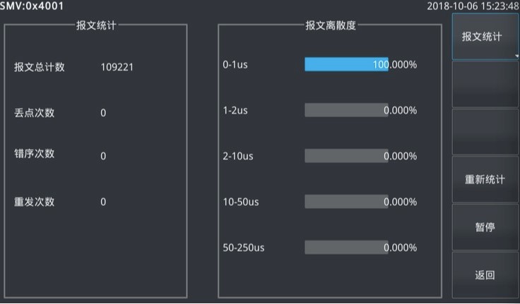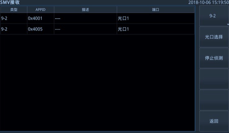 SMV控制塊是描述IED將模擬量往外發(fā)送的能力,將需要發(fā)送的模擬量實(shí)例化為不同的LN,將其匯總至發(fā)送數(shù)據(jù),數(shù)據(jù)集再關(guān)聯(lián)至Smvcb。 在NSA-60 設(shè)備端口進(jìn)入“SMV接收”界面,點(diǎn)擊“偵測(cè)”按鈕,首先偵測(cè)各光口是否接入光纖,未接入光纖的光口將給出提示,接下來(lái)進(jìn)行偵測(cè),將偵測(cè)結(jié)果顯示在界面,點(diǎn)擊任意一個(gè)APPID的SMV,即可查看有效值。