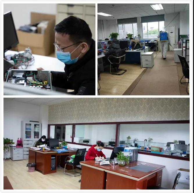 5)辦公室調(diào)整: 辦公區(qū)域重新調(diào)整了工位,確保工作間隔一米以上。 消毒組每日多次對(duì)辦公區(qū)域和公共區(qū)域進(jìn)行全方位、無(wú)死角消毒,及時(shí)開窗通風(fēng)保證空氣流通。