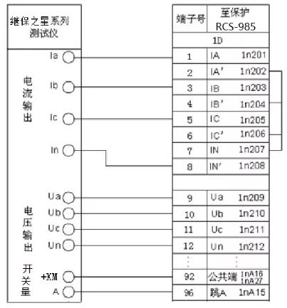繼保之星-S60 手持式繼電保護(hù)測(cè)試系統(tǒng)輸出電壓UA、UB、UC、UN接入發(fā)電機(jī)保護(hù)裝置機(jī)端電壓端子排。 繼保之星-S60 的輸出電流IA、IB、IC、IN接入發(fā)電機(jī)保護(hù)裝置機(jī)端電流端子排。 發(fā)電機(jī)保護(hù)裝置端子排的跳閘出口接入繼保之星-S60 開入量A和公共端。
