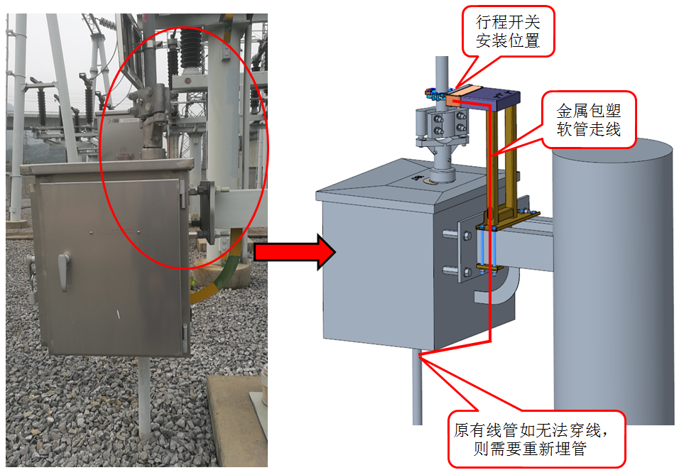 2)非GIS站刀閘微動開關傳感器實施圖: