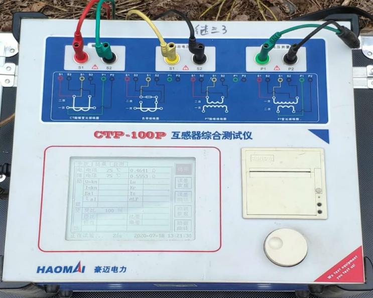 CTP系列互感器測試儀接地,S1-S2(源輸出)、M1-M2(輸出測量)接入二次端子箱保護繞組,P1-P2(感應電壓測量)接一次側測試相。