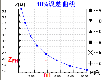 5Pnn和10Pnn的CT可認為最大電流倍數為nn,二次回路阻抗為ZFH,查閱曲線上(nn,ZFH )位置若處于曲線下方,則該CT滿足使用需求,若位于曲線上方,則不合格。
