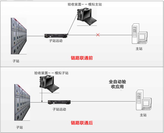 變電站監(jiān)控信息一體化驗(yàn)收裝置 通過(guò)模擬調(diào)度主站,實(shí)時(shí)與變電站現(xiàn)場(chǎng)遠(yuǎn)動(dòng)機(jī)通訊,進(jìn)行站內(nèi)同步驗(yàn)收,將驗(yàn)收信號(hào)批量發(fā)給調(diào)度主站,提高對(duì)點(diǎn)的正確性及快速性。