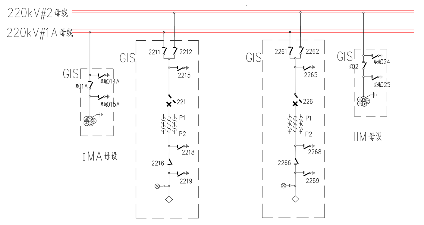 1)該站一次設(shè)備采用全封閉式GIS結(jié)構(gòu),下圖為選取的兩個試驗間隔以及母設(shè)示意圖。