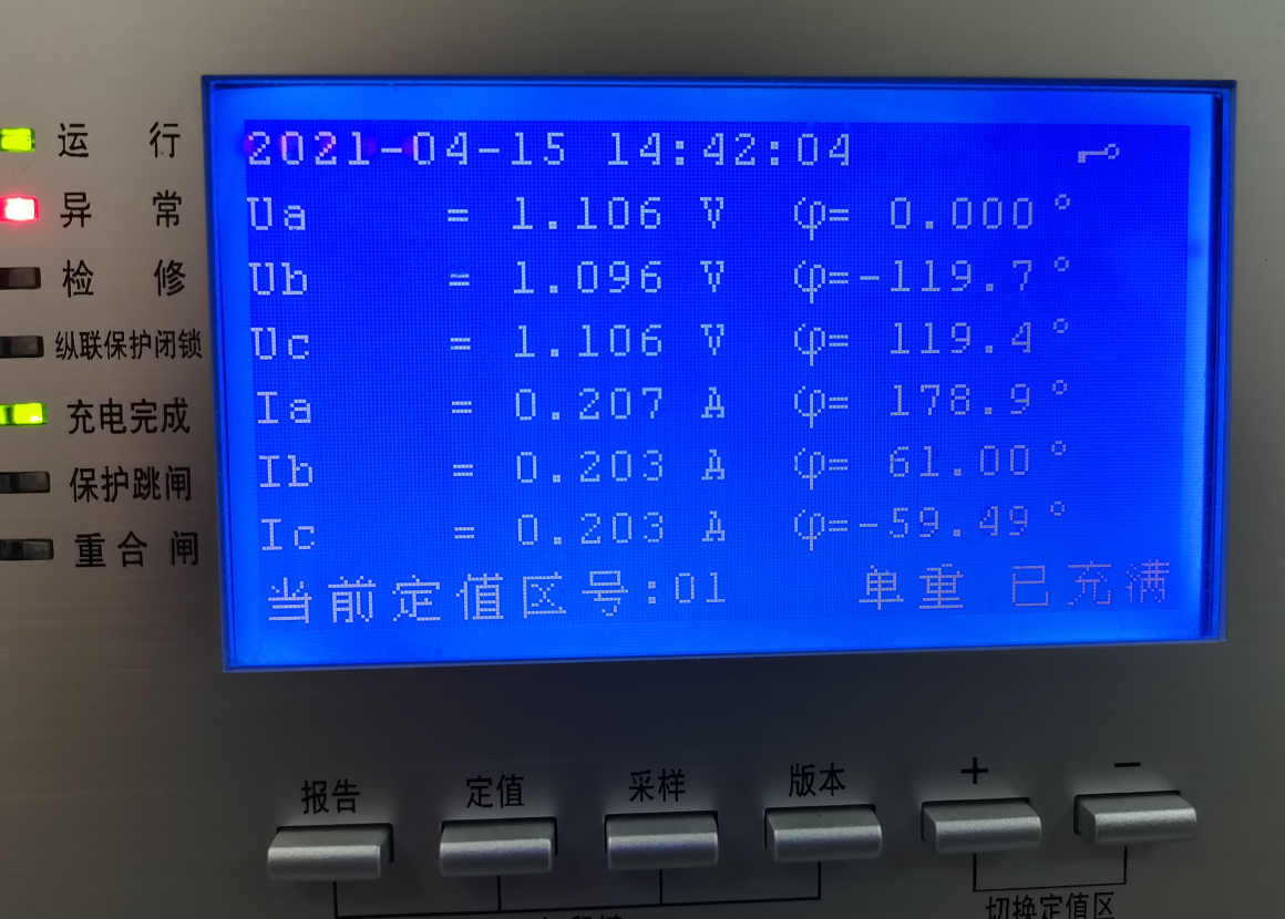 一次量保持輸出,在保護裝置上查看數(shù)據(jù)。