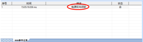 狀態(tài)序列設(shè)置完成后開始試驗(yàn),觀察開關(guān)狀態(tài),出現(xiàn)先合閘再跳閘狀態(tài)變化,同時(shí)配電之星-P2200 模擬主站收到一個(gè)負(fù)荷側(cè)正向閉鎖的SOE信息。