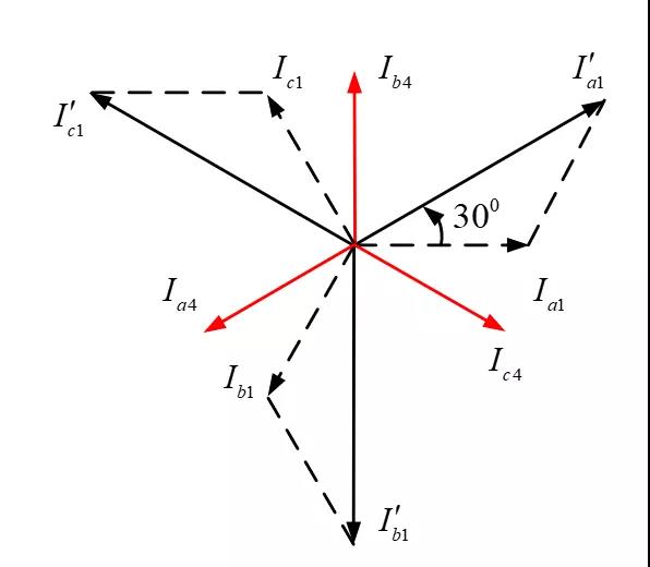 當(dāng)高低壓側(cè)分別加入電流時,經(jīng)過相位校正和幅值校正后的高、低壓側(cè)二次電流為: