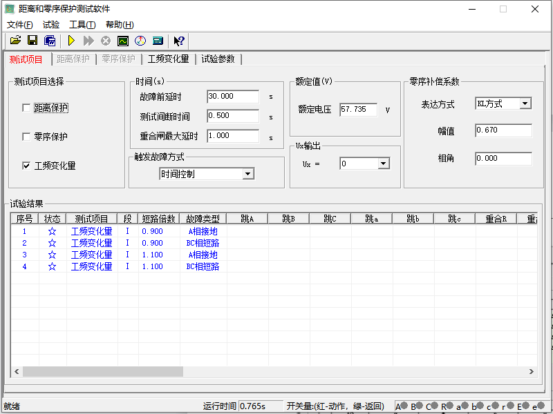 △ 保護(hù)動(dòng)作試驗(yàn)界面