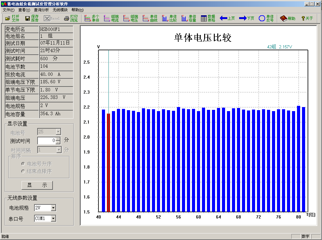 蓄電池的充放電試驗可對電池內(nèi)部進行活化,充放電后蓄電池組的電壓更加均衡,搭配蓄電池單體無線檢測模塊可在放電和充電過程中用無線通信方式監(jiān)測每節(jié)電池的電壓和放電曲線,并可在任意某節(jié)電池低于下限時自動報警并暫停放電以及繼續(xù)放電。