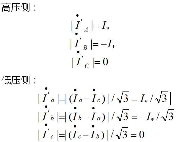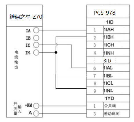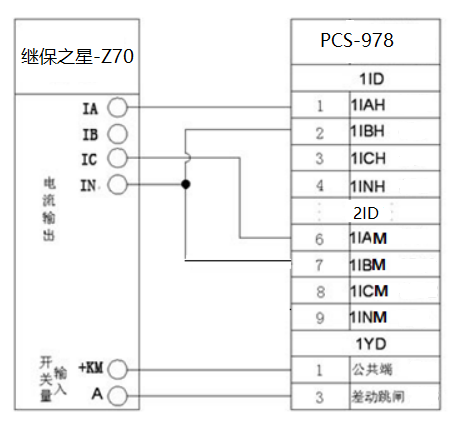 即B、C兩相都會受到影響。 為避免受此影響,使得檢驗(yàn)更容易進(jìn)行,高中壓側(cè)采用的接線方式為,電流經(jīng)繼保之星Z70 的IA相,從高壓側(cè)A相流入B相流出。