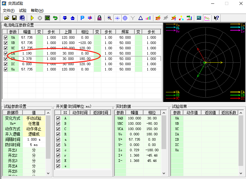 根據(jù)以上試驗接線與分析,通過繼保之星-7000 兩相電流即可做發(fā)變組差動平衡值。