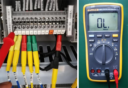 4)如果此時(shí)聽(tīng)到萬(wàn)用表發(fā)出“滴——”的聲音,表示端子接線正常,否則需要查看電纜接線,排除問(wèn)題。