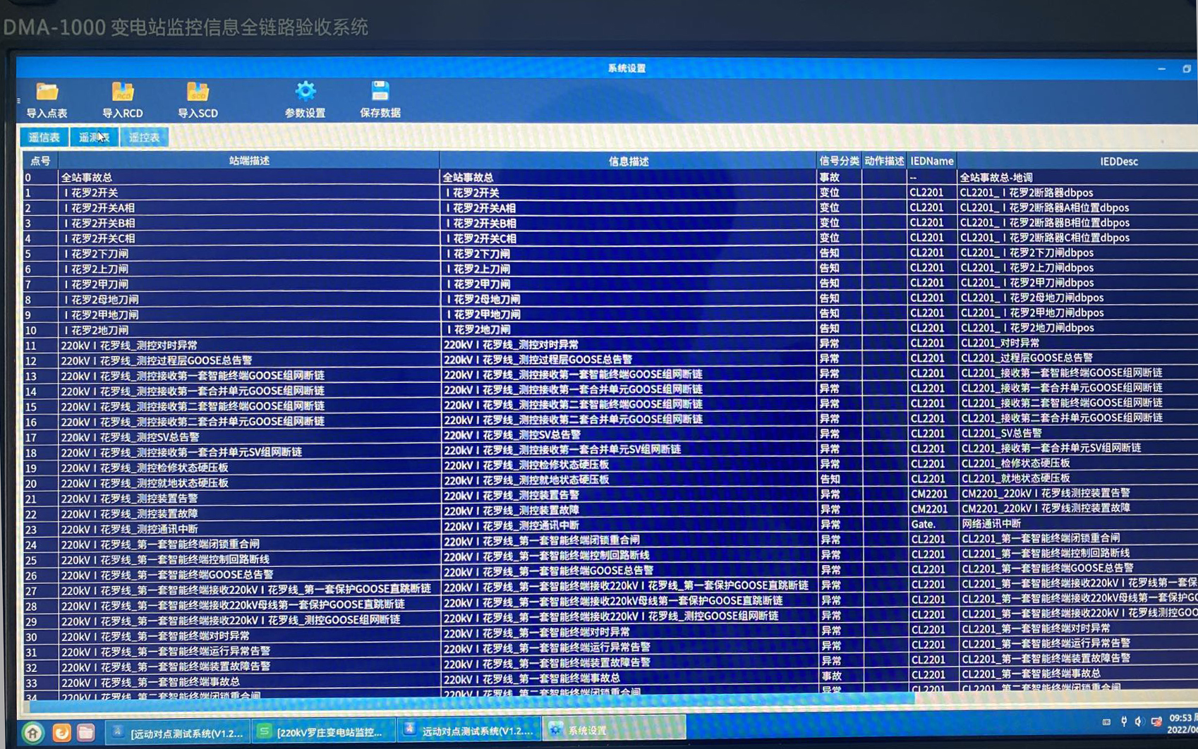 此次試驗一共對點遙信2586個點,通過DMA-1000 變電站監(jiān)控信息自動對點裝置的批量測試功能在2.5h內(nèi)完成所有對點任務(wù),為送電工作的有序推進(jìn)提供保障,得到送變電公司的一致肯定與好評。
