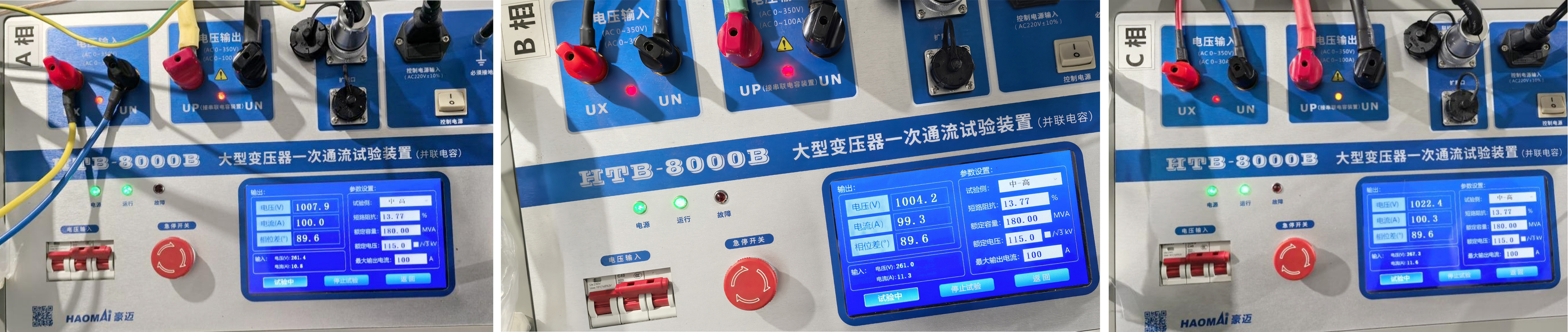 HTB-8000 大型變壓器一次通流試驗(yàn)裝置 采用串聯(lián)和并聯(lián)電容補(bǔ)償新方法,在變壓器繞組上施加電壓電流量,利用大型變壓器短路阻抗進(jìn)行通流試驗(yàn)。在大型變壓器一次通流回路中串聯(lián)電容以補(bǔ)償部分感抗,降低試驗(yàn)回路阻抗,再通過(guò)并聯(lián)補(bǔ)償電容降低試驗(yàn)電源電流,從而完成大型電力變壓器一次通流試驗(yàn)。