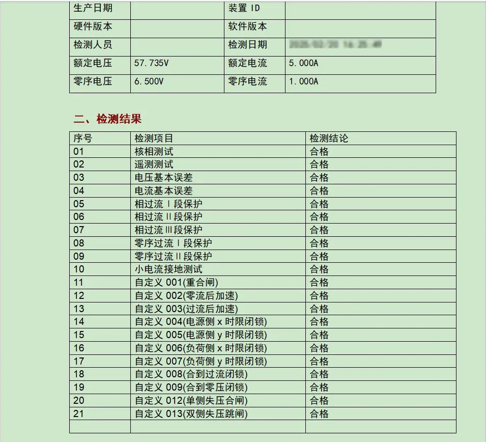 通訊建立后點(diǎn)擊“進(jìn)入檢測(cè)”,再點(diǎn)擊“開始測(cè)試”即開始一鍵自動(dòng)測(cè)試,若測(cè)試過(guò)程中存在個(gè)別未完成項(xiàng)目,可等待自動(dòng)測(cè)試完成后進(jìn)行單相測(cè)試,所有測(cè)試全部完成后,點(diǎn)擊生成報(bào)告。