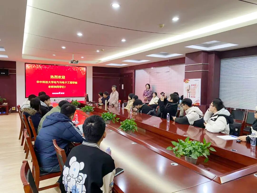 12 月 4 日,華中科技大學(xué)電氣與電子工程學(xué)院 30 余名師生走進(jìn)武漢豪邁,開啟了一場(chǎng) 別開生面 的實(shí)踐學(xué)習(xí)之旅。作為 “湖北高校省級(jí)實(shí)習(xí)實(shí)訓(xùn)基地”,武漢豪邁持續(xù)深化產(chǎn)學(xué)研協(xié)同育人機(jī)制,與華中科技大學(xué)、武漢工程大學(xué)、武漢紡織大學(xué)等高校構(gòu)建了長(zhǎng)期穩(wěn)定的技術(shù)交流與實(shí)習(xí)實(shí)訓(xùn)合作體系 。